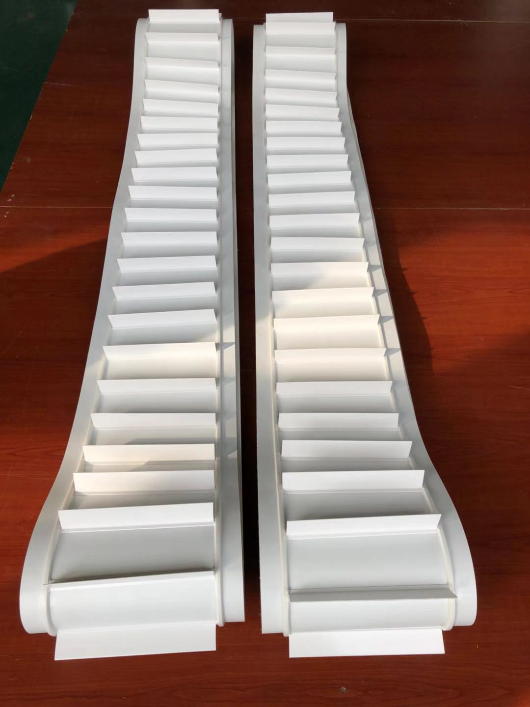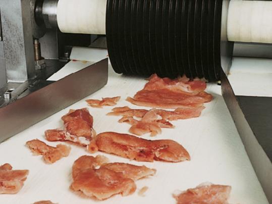產(chǎn)品材料說(shuō)明: PU輸送帶材料: PU環(huán)保型材料:聚氨酯(PU)作為輸送帶的生產(chǎn)原材料,產(chǎn)品配方科學(xué)合理,符合食品衛(wèi)生標(biāo)準(zhǔn)可與食品直接接觸,色澤適度,無(wú)異味。并且具有:耐油、耐腐蝕、耐寒、耐切割等特性。聚氨酯(PU)輸送帶使用經(jīng)過(guò)特殊處理的高強(qiáng)度人工合成聚氨酯織物作為承載骨架,涂覆層由聚氨酯(PU)樹(shù)脂制成。不但具有普通輸送帶抗拉強(qiáng)度高、曲繞性好、輕、薄、韌等特點(diǎn),而且耐油,無(wú)毒衛(wèi)生,容易清洗。該類輸送帶完全符合美國(guó)FDA衛(wèi)生標(biāo)準(zhǔn),耐磨,抗物理老化,是一種經(jīng)久耐用的輸送產(chǎn)品。 PU帶產(chǎn)品加工說(shuō)明: 1. PU輸送帶有數(shù)十種花紋可供選擇(如光面、亞光面、鉆石紋、十字紋、高爾夫球紋等) ; 2. PU輸送帶表面可加裙邊擋板; 輸送帶背面可加導(dǎo)條、紅膠、海綿等特殊加工。 3. PU 輸送帶有 白色 、藍(lán)色 、墨綠色 、透明色 等顏色可供選擇。