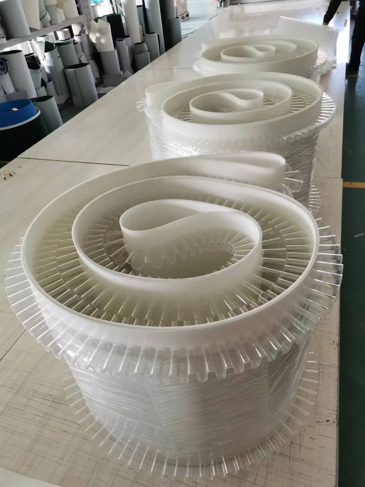 輕度爬坡輸送帶,高度爬坡輸送帶,加擋板提升輸送帶,垂直提升機(jī)皮帶,防滑輸送帶,砂光機(jī)輸送帶,耐磨輸送帶,較重物品輸送帶,輕質(zhì)物品輸送帶,導(dǎo)向防跑偏輸送帶,打孔吸風(fēng)輸送帶(吸風(fēng)機(jī)皮帶),帶耙釘輸送皮帶,螺旋提升輸送帶,轉(zhuǎn)彎提升輸送帶,超寬物品輸送帶,海綿輸送帶,挖槽輸送帶,加檔塊輸送帶,封邊輸送帶,槽型輸送帶,刀口輸送帶等。